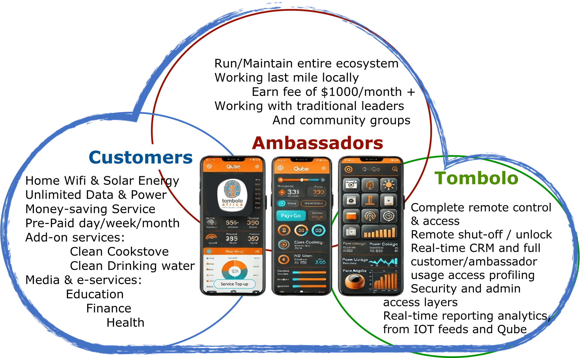 The solution is DRIVEN, MANUFACTURED, INSTALLED, SERVICED AND OPERATED by the community, creating an ecosystem that is SELF SUSTAINED, SAFE, AFFORDABLE AND RELIABLE.